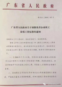 6月20日,广东省人民政府发布《广东省人民政府关于调整我省企业职工最低工资标准的通知》(粤府函〔2018〕187号),通知从2018年7月1日起,对广东省企业职工最低工资标准和非全日制职工小时最低工资标准进行调整。其中广州市企业职工最低工资标准从原来的1895元\月调整至2100元\月,增长205元。